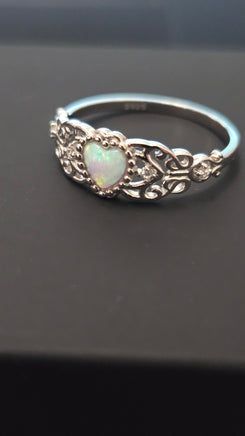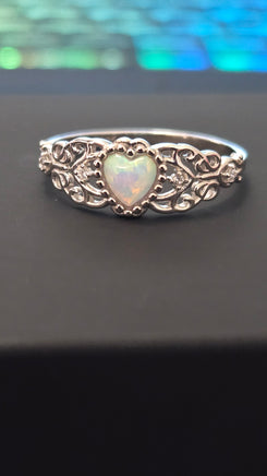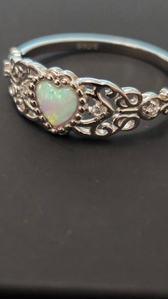 Enchanted Opal - Heart-Shaped Opal Ring with Filigree Sterling Silver 925