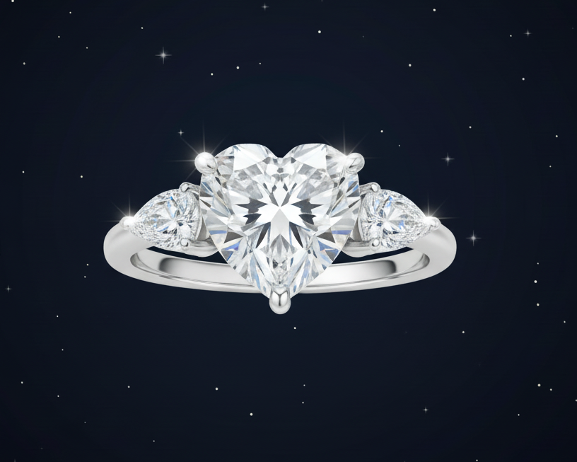Introducing Eternal Devotion - a stunning 2-carat moissanite heart ring that perfectly balances elegance and presence. This beautiful piece features a brilliant heart-cut moissanite center stone that sparkles with exceptional fire and brilliance.