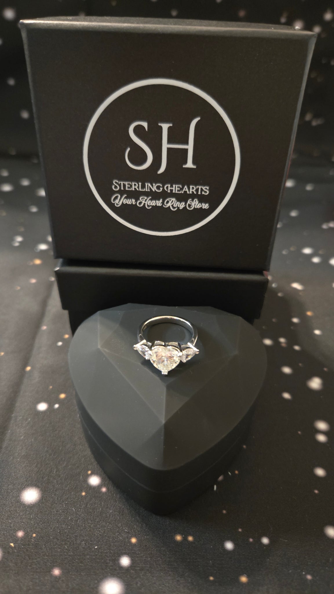 We stand behind the quality of every ring we sell. If your ring ever has a manufacturing defect—loose stones, broken prongs, or band issues—we'll replace it free of charge with the same ring. If the ring is no longer available, we'll replace it with another of equal value, for as long as Sterling Hearts remains in business.
