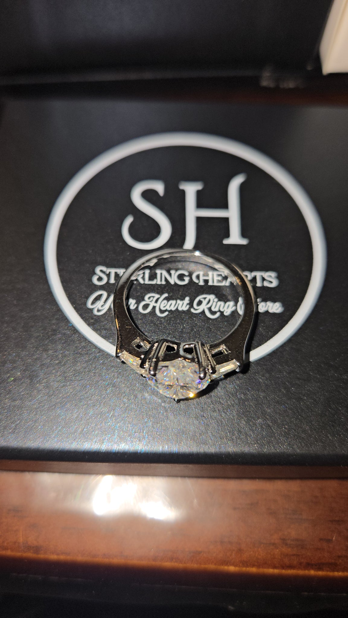 Each ring comes with a GRA (Gemological Research Association) moissanite certificate, guaranteeing the authenticity and quality of your stone. The 4ct heart-shaped moissanite delivers extraordinary fire and brilliance that rivals natural diamonds, with D color and VVS1 clarity for maximum sparkle.