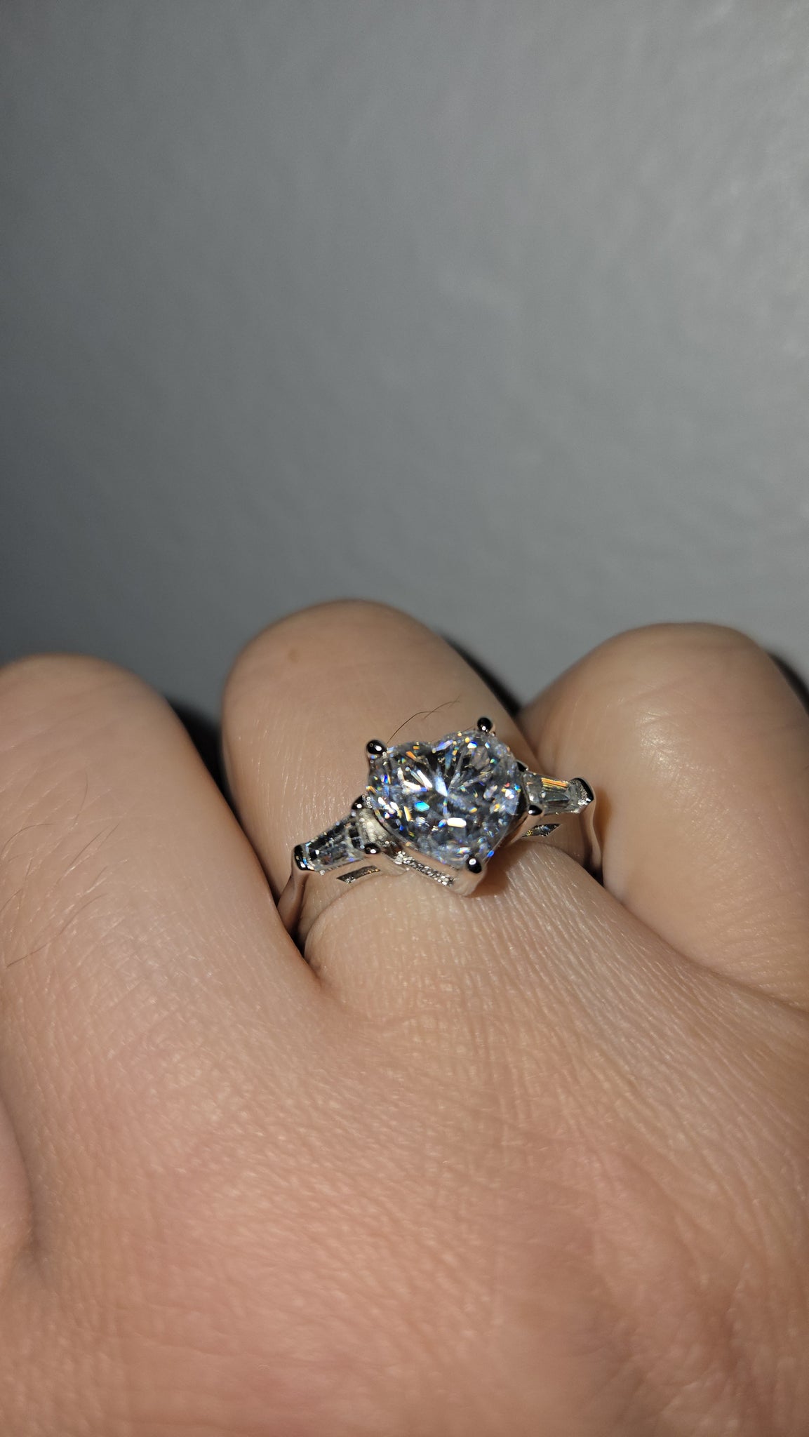 A stunning 4-carat moissanite heart ring that embodies timeless romance and exceptional brilliance. Crafted in premium sterling silver 925, this breathtaking piece features a magnificent heart-shaped moissanite centerstone surrounded by sparkling accent stones in a delicate pavé setting.