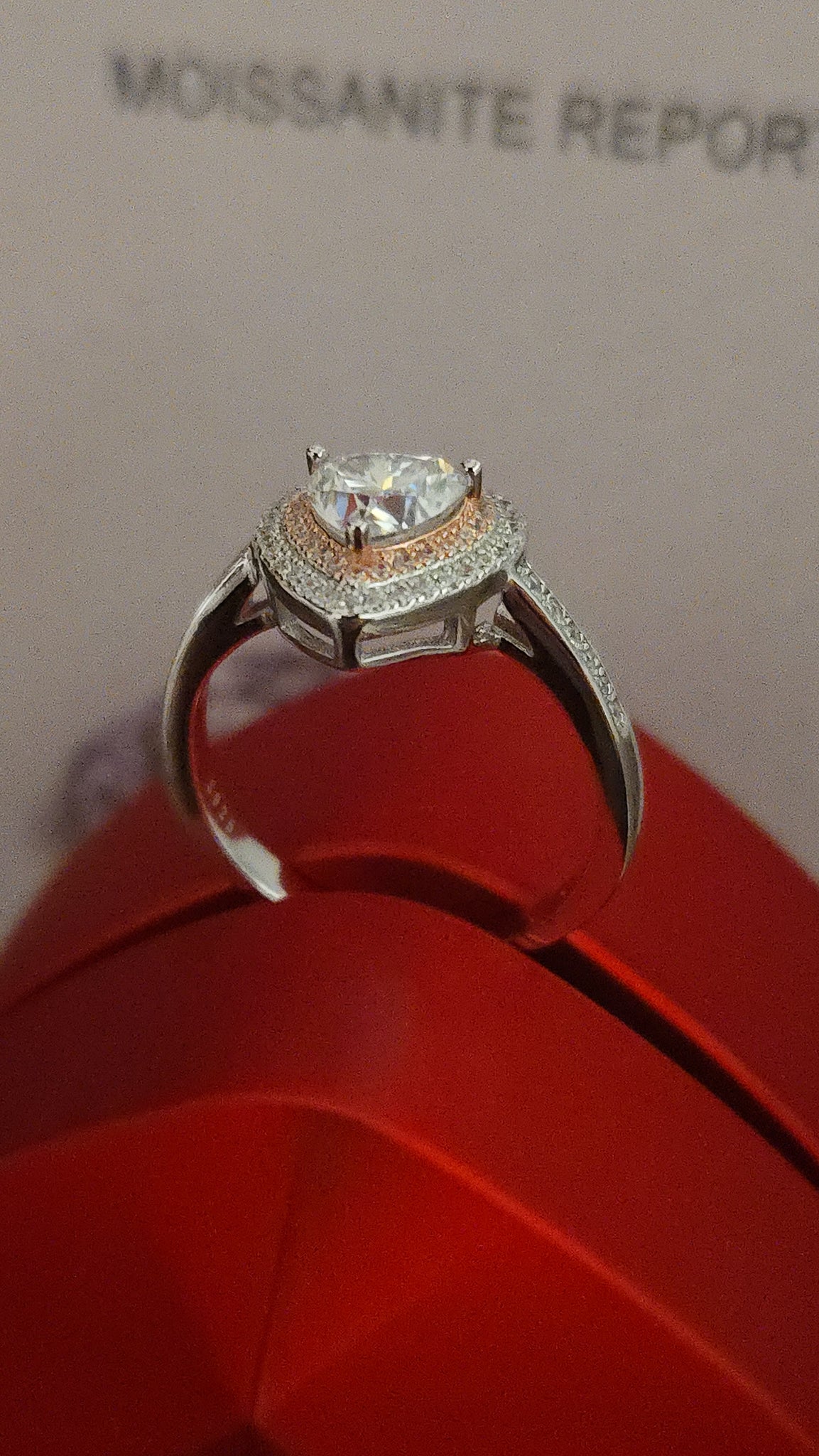- Exclusive Pink Inner Halo Design: Pink stones surround the heart, white outer halo for extraordinary depth and romantic appeal