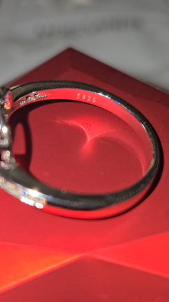 The split shank band is crafted in premium 925 sterling silver with pavé-set accent stones that create continuous sparkle from every angle. The pink inner halo adds a soft, romantic dimension that makes this ring truly one-of-a-kind.