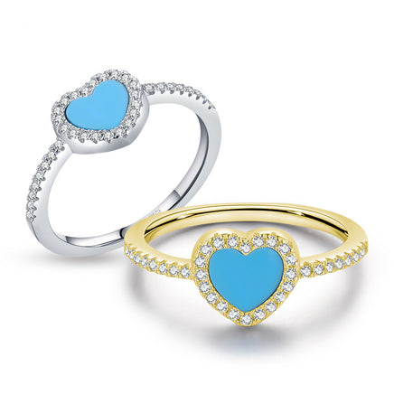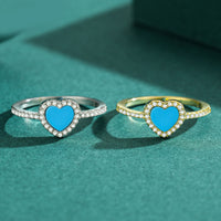 Expertly crafted, this silver heart-shaped turquoise ring is a perfect addition to any individual's wardrobe. Made with sterling silver and inlaid with dazzling gems, it comes in silver and gold colors and a variety of sizes (US-5 to US-9).