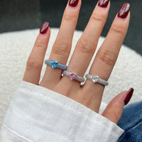 Impress your loved ones with this stunning Love Heart Colored Gems Sterling Silver Ring! Each ring is specially treated with a durable electroplating process to ensure long-lasting color. Choose from a variety of colors - white, blue, or pink - and show off your unique style. Made with high-quality silver, this heart-shaped ring is the perfect accessory for anyone looking to add a touch of elegance to their wardrobe. The width of 6.5MM and thickness of 4.2MM make it a comfortable fit for all. Don't miss out on this must-have piece of jewelry!