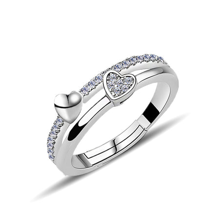 A perfect match for the perfect couple, this stunning 925 sterling silver ring showcases a heart-to-heart design and exquisite diamond detailing. Its shining silver material and delicate open ring design make it easy to wear and comfortable for all-day wear. It's a timeless piece that represents unbreakable love and commitment and is sure to be a treasured addition to any jewelry collection. Order now and feel the weight of its symbolism, weighing in at approximately 1.84 grams.