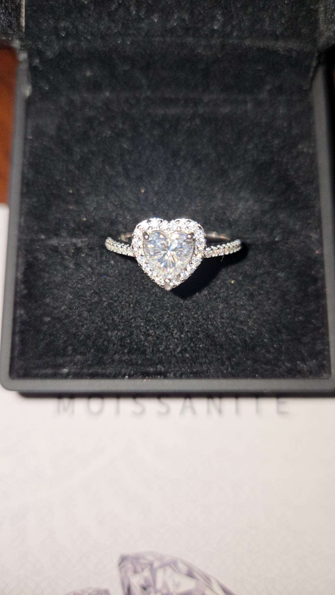 - Your stunning Radiant Love 1ct moissanite heart ring with halo